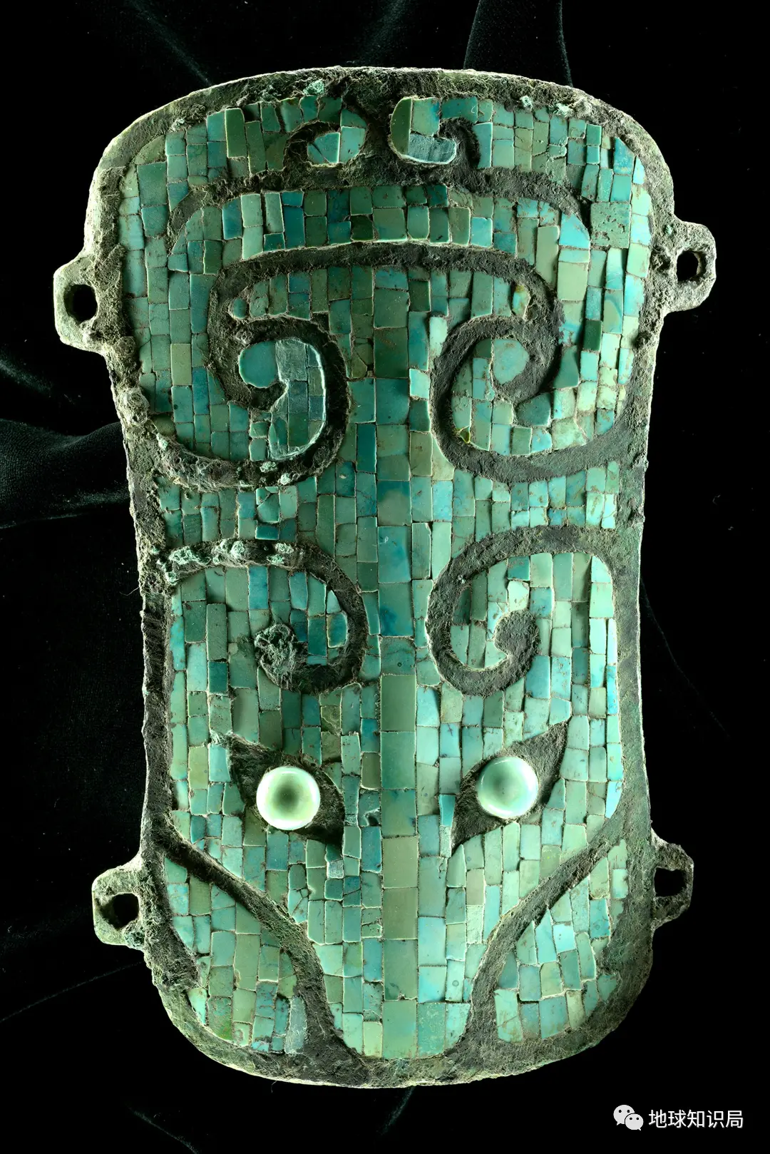 二里头遗址1984年出土的嵌绿松石兽面纹铜牌饰▼