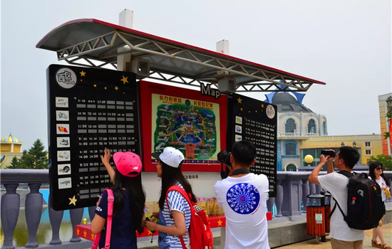 由于长影世纪城园区内每个项目的开放时间都有明确的时间安排,所以入园后的第一件事就是了解各项目的时间表,做路线图规划,这样才能既节省时间又一个不落的把每个项目都体验一遍。