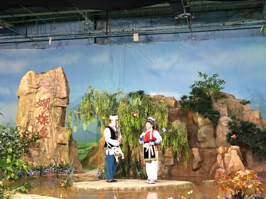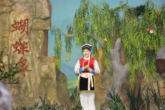 将自己从儿时的记忆中拉回,去找寻可以实现明星梦的地方!当年蜚声中外的影片《五朵金花》拍摄时搭建使用的蝴蝶泉布景,如今被按照1:1的比例在园区内还原再现。先是由园区内专业的演员演绎这段浪漫的爱情故事,随后会邀请现场的游客来模仿演绎,亲自扮演剧中的主角为现场的观众呈现这段经典的桥段。虽然小编有着尚未实现的明星梦,可还是因为害羞未争取这次机会。但当天参与演出的游客大哥与女主角搭配的特别有默契,仿佛真的置身于云南大理的蝴蝶泉边,或浅吟低唱,或与另一半牵手漫步。下面的观众也仿佛看到影片故事中的男女主角真的走出了银屏,走进了生活。