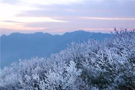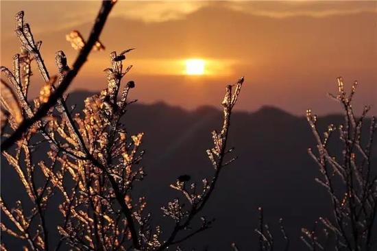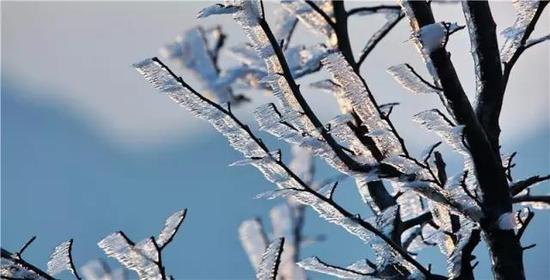 在雾淞的装扮下,黄眉尖银装素裹,玉树琼枝晶莹剔透,景色如诗如画,美不胜收。