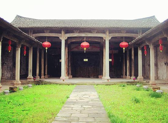 黄氏宗祠,建于清朝乾隆年间,由五个部分组成,分别是五凤楼、庭院、廊庑、享堂、寝室。现存享堂一间,是祠堂的精华部分。黄氏宗祠上共有十六个“来头”,因为家族共出过十六位进士,其中两位还中了状元。中间 “状元及第”匾额是乾隆皇帝御笔所赐。