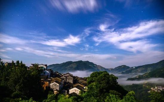 四周群山环绕,山清水秀,境内空气清新,鸟语花香,景色迷人,走入昌溪如入世外桃源。迎着夕阳的余晖,向古村遥望,整个古村落尽收眼底。网络图