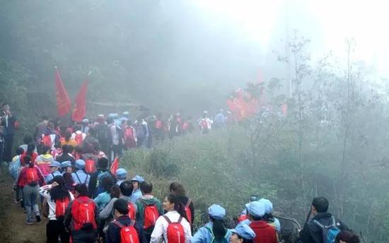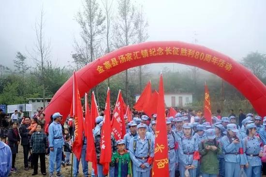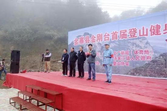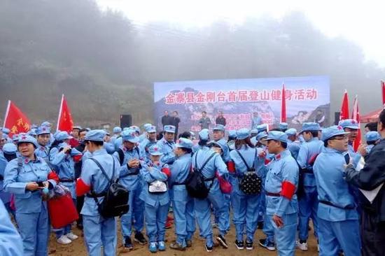 10月16日,金寨县金刚台首届登山健身活动在金寨汤家汇镇金刚台举办。来自全县的400余名登山爱好者参加了本次活动。 本次活动起点在焦元,途经瀑布群、铁瓦寺、平天铺、天梯、老鹰嘴、风洞,全程约16公里。本次徒步地点是刚刚修建的金寨县汤家汇镇金刚台登山健身步道。登山队员身穿红军服,手举“纪念长征胜利80周年”“挺进大别山、千里走金寨,重走红军路”“金刚台登山健身活动”等红旗,历时4~6个小时,走完全程。驴友们在健身的同时也欣赏到了金刚台沿途美丽的秋景,登上1584米高的峰顶,无限风光尽收眼底,金刚台向游客们展现的是一幅绝美的秋之画卷。 此次活动由金寨县文广新局(体育局)和金寨县汤家汇镇人民政府主办,金寨县登山协会承办。 金刚台,坐落在金寨县汤家汇镇西北部,主峰海拔1584米。西北蜿蜒至河南省商城县,东北伸展至铁冲。山势险陡,双峰高峙,它像一扇巨大的金刚石门,耸立在豫皖分界线上,独当一面,坚不可摧。 走进金刚台,仿佛走进一个爱丽丝仙境之旅。这里的石头似乎修足了道行,化作种种形态,猴儿石、将军石、仙脚石、燕子岩(如来神掌)、天鹅岩、莲花石、猫儿石、狮子盘球、双石尖凌冰石,奇形怪状,有形似也有神似的。悟石问道,这样也能打发一天的时光。
