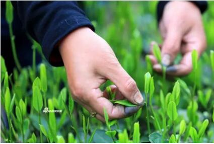 六安瓜片一般在谷雨前后开采,至小满节气前结束,采摘标准以一芽二三叶为主,群众习惯称之为“开面”采摘。
