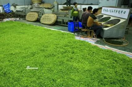 上午采的茶中午会送回家摊晾,下午收工后,有时顾不上吃饭,便将全天采得的鲜茶装袋拉到工厂去炒制。