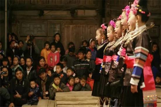 侗家人在大型的节庆日、会客送客时,都以芦笙为贵,示意着侗家人待客的最高礼仪。在肇兴古镇里,如果有幸可以看到芦笙迎宾的演出,便可以深刻地体会到侗家人的厚重底蕴。侗族人们喜歌,每年都有大大小小的侗族大歌表演比赛。