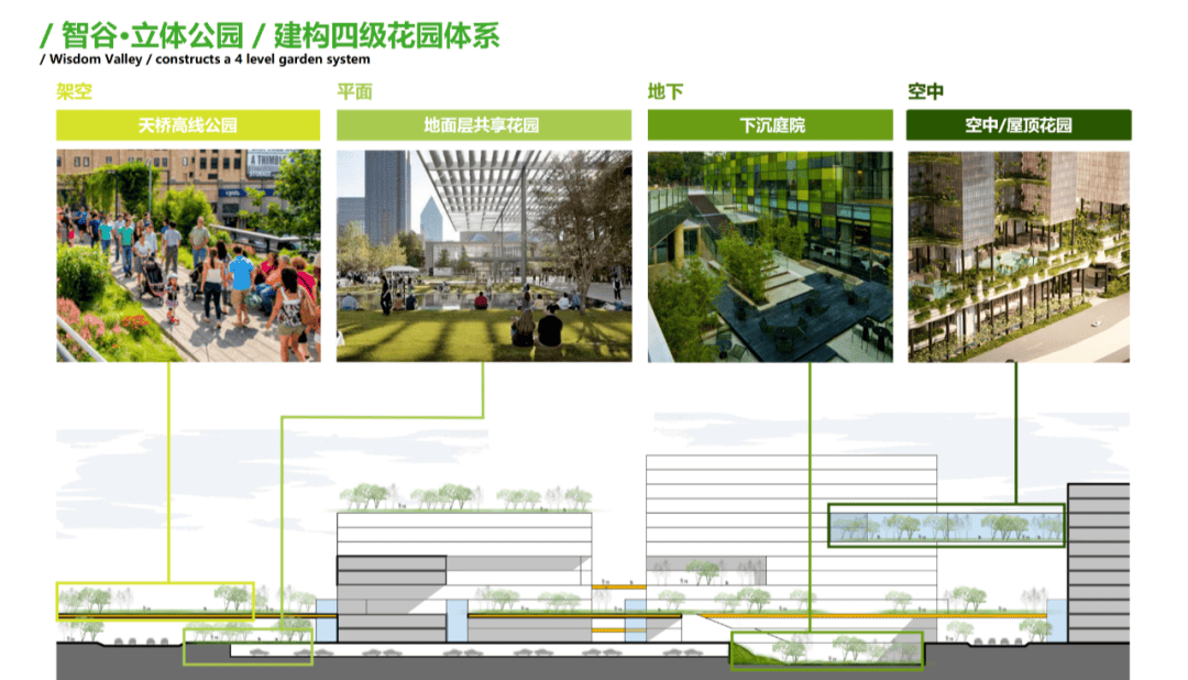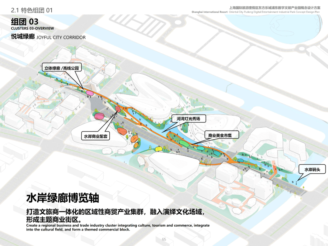 - 慢享系统:打造步行友好环境,结合绿轴与水系设计慢行路线,提升体验感。