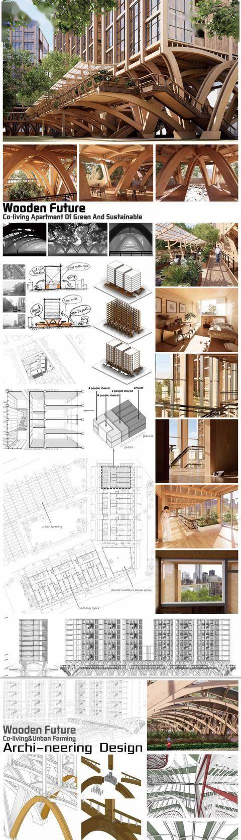 - 社区结构重塑与可持续设计:该方案以富有想象力的手法对社区结构进行了创新性重塑。项目整体规划秉承可持续设计原则,核心建筑大量采用低碳环保的木材结构,并创新性地运用了分级共享的立体公共空间模型。