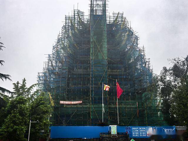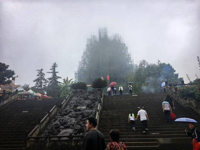 往上再走,就是著名的观音阁,看网上的照片很美,但是这天维护,不但登不成,远看的效果也大打折扣。
