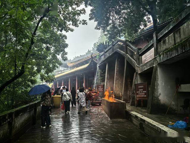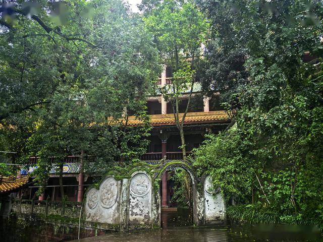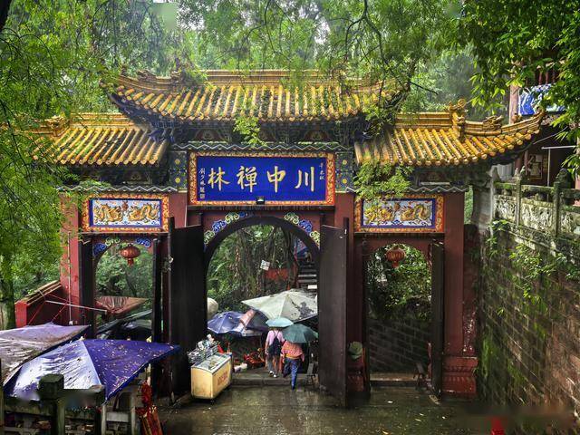 您提到从上山大门进入,看到“川中禅林”的匾额。这四个字精准概括了灵泉寺的地位——它是川中地区最具影响力的禅宗寺院之一。山门金碧辉煌,在雨中更显庄严肃穆。您观察到的红墙在阴雨中略显斑驳,反而增添了一份岁月沉淀的沧桑感。