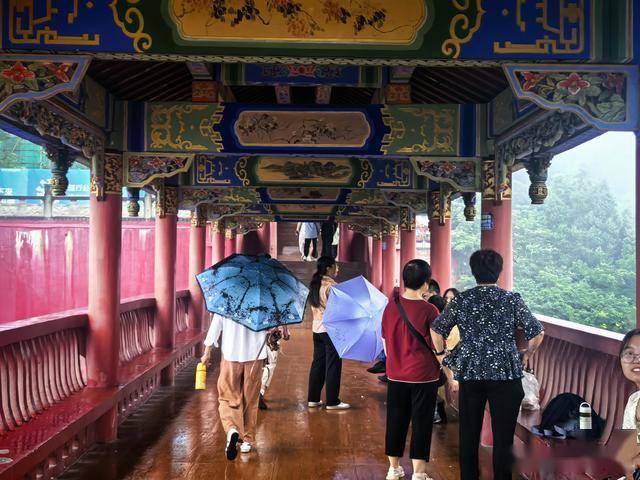 两边的长廊游客歇息的很多,今天的雨还是有些湿人衣。