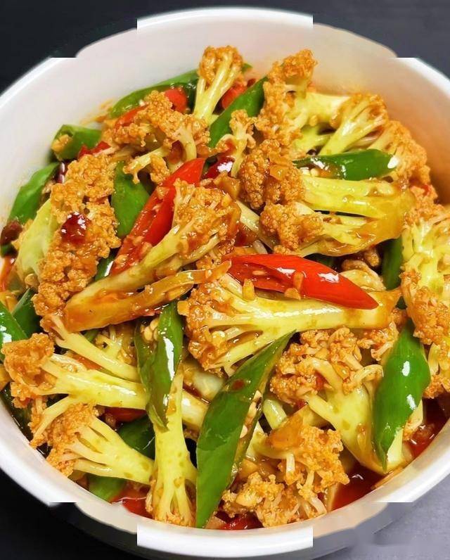 1. 花菜剪小朵别太小,流水冲后淡盐水泡10分钟,逼出藏的小虫,沥干再用厨房纸吸干,水分越少越焦香。