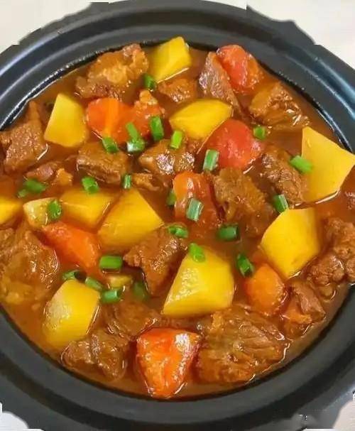 6. 放入土豆块,继续炖煮 20 - 30 分钟,至土豆软烂。
