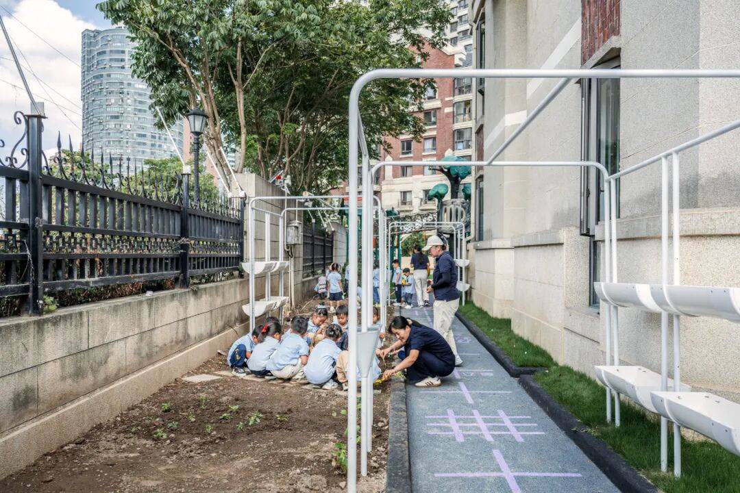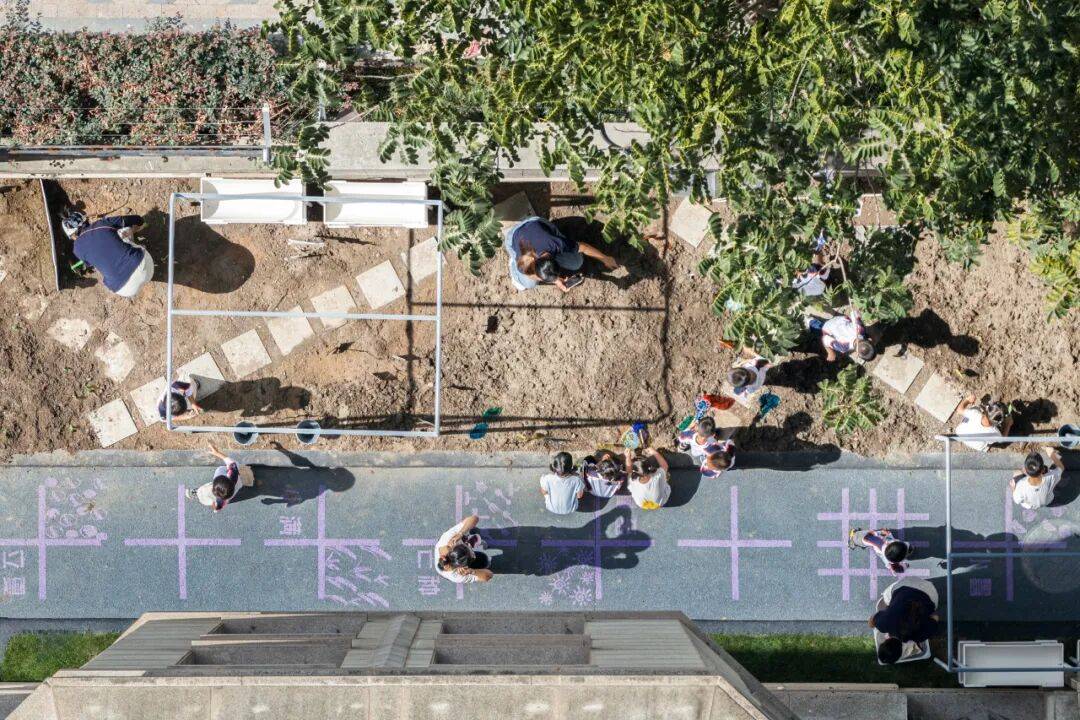 VIA维亚景观设计团队在项目改建完成后与幼儿园小朋友现场互动 ©CreatAR Images