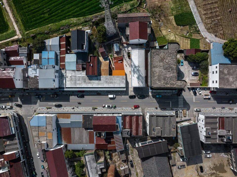 - 传统格局:集镇主干道沿北沙渚塘两岸分布,呈丁字形街道格局。街北侧开设各式店面,南侧有水阁楼及大型桥埠头,河上船只停靠频繁,形成了“前店后坊”的传统商业形态。
