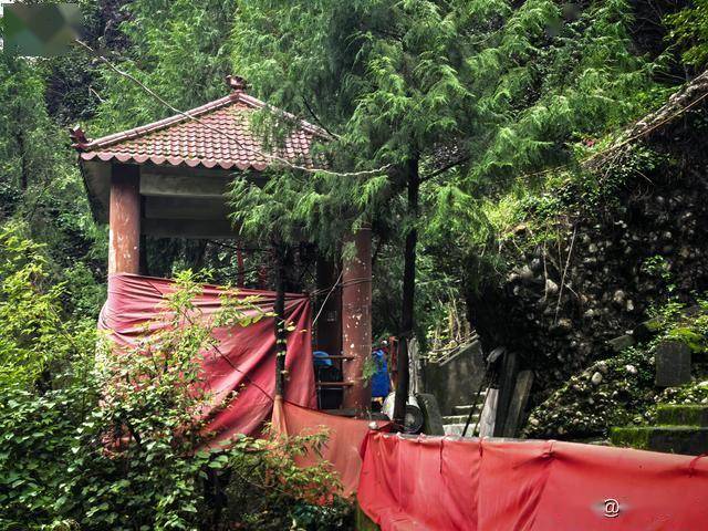 寺在万源城南十二里。旧路缘石级凡数十接,迤逦攀跻。至寺,俯身下瞰,则岩壁四片,突兀夺山而出,屹立如鸡冠,高可二十丈,岩壁逼河水成深潭而级峻路狭,仅容著趾,行旅至此则股栗。