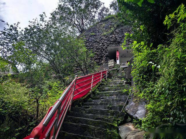 从隧道出来,沿着北面的台阶上去到石冠寺,上面有几间小小的房子,有一个守庙人住在这里,他说我可以随便看看。