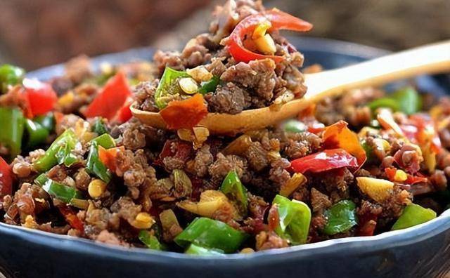 食材:牛肉末 花椒粉1茶匙 料酒1汤匙 生抽1.5汤匙 郫县豆瓣酱1汤匙 盐适量 鸡精适量 香油1茶匙 尖椒150克 小葱3棵 姜1小块 植物油5汤匙