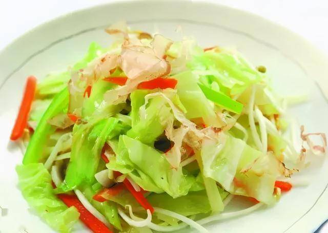 材料:圆白菜半棵、西红柿2个、豆腐干5片、火腿1片、葱姜末各1茶匙、酱油1汤匙、五香粉1/2茶匙、盐1/2茶匙、糖1/2茶匙。