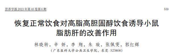 [1]林晓转,恢复正常饮食对高脂高胆固醇饮食诱导小鼠脂肪肝的改善作用,营养学报,2023-12-31