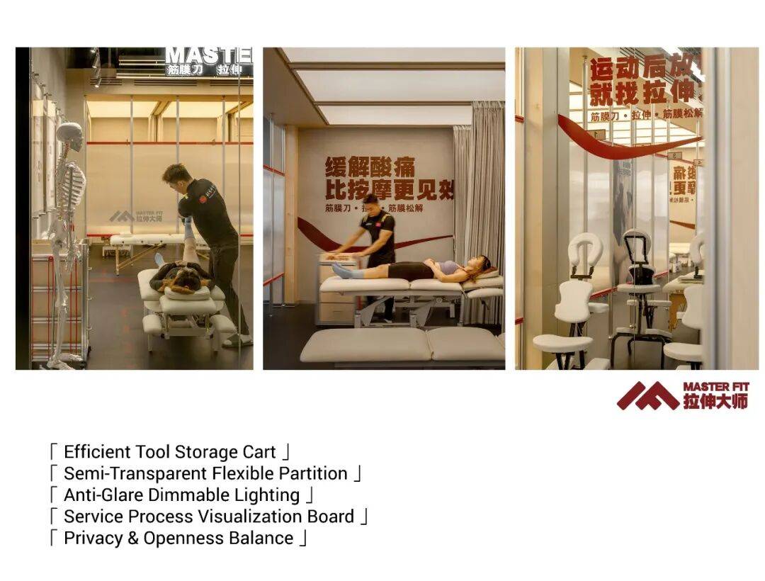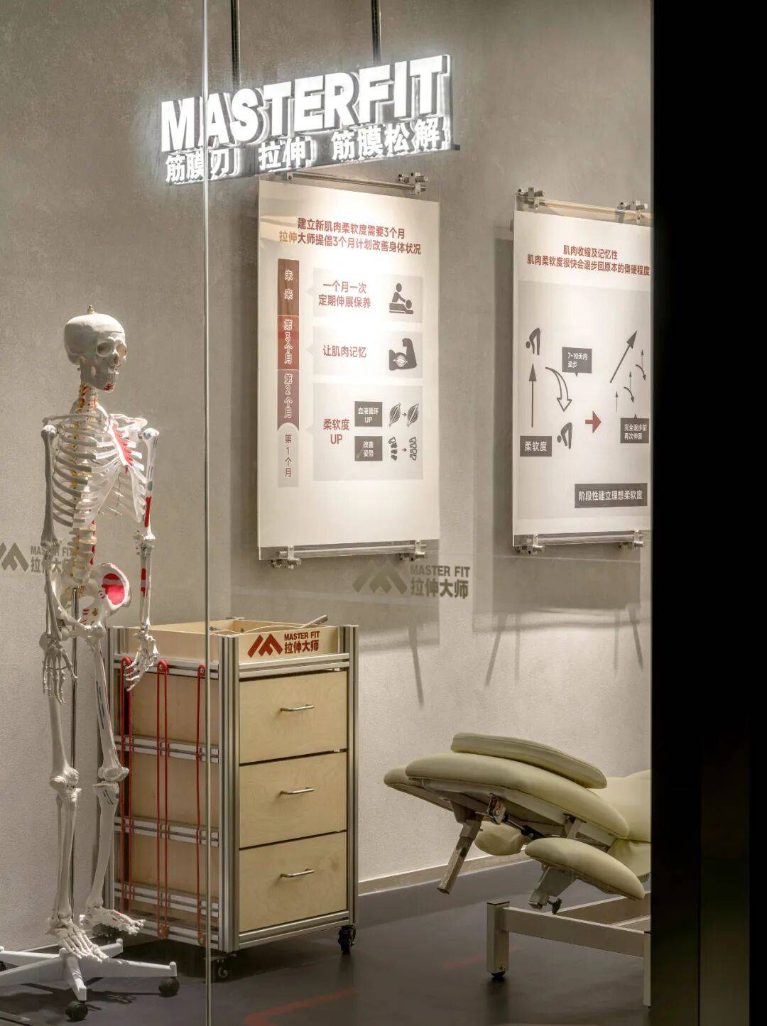 MASTER FIT拉伸大师深圳首家新形象门店的设计,不仅是品牌空间的物理呈现,更是其专业基因与用户体验理念深度融合的象征性表达。该门店通过空间叙事、功能布局、视觉语言、技术融合与情感连接五大维度,系统化地诠释了“科学拉伸+人性化服务”的品牌内核,实现了从“健身附属”到“康复级体验”的认知跃迁。以下从五个核心层面深度解析其设计逻辑与战略意图: