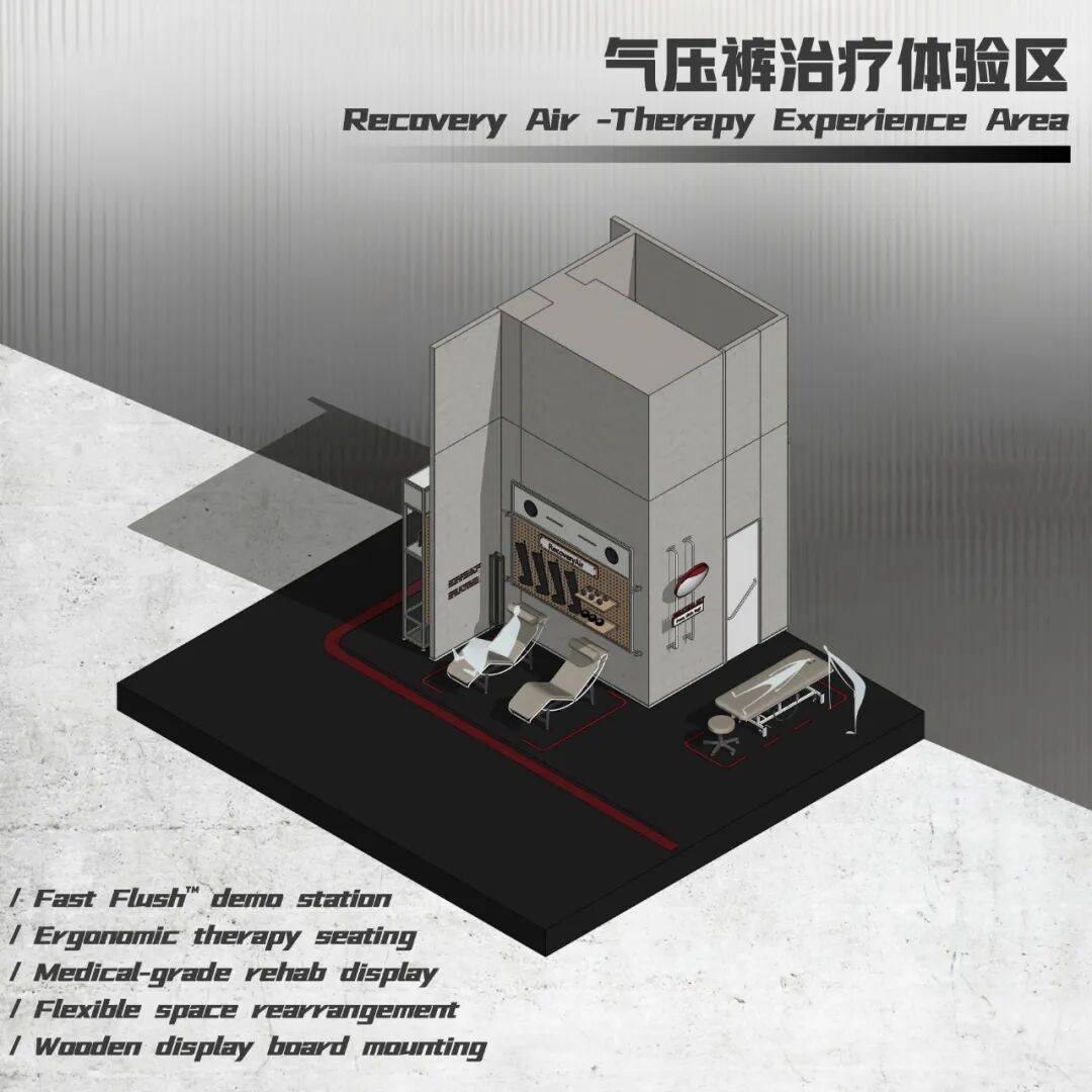日常放松场景中,区域聚焦“精准康复 + 感官辅助” 双重体验:不仅依托气压裤的 TruGrade™精准压力梯度技术与 Fast Flush™快速充放气系统,实现从足部至心脏的分级压力循环,高效缓解深层肌肉疲劳;还搭载定制化专业音响系统,持续播放低频舒缓的疗愈音乐,通过声波辅助放松神经、平复身体张力,进一步提升拉伸放松的沉浸感与效果。