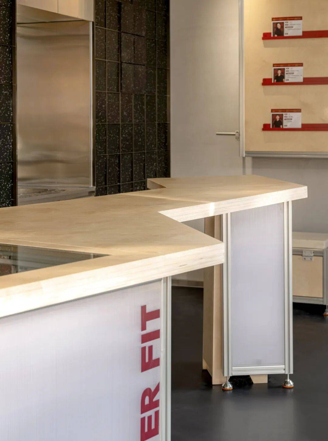 工作人员与用户可在台面前自然交流,从接待登记到课程咨询,互动过程更显平等、松弛,如同运动社群里的日常对话,彻底摒弃传统收银台的疏离感;同时,区域内的动线规划开放流畅,用户往来、咨询无阻滞,进一步强化了空间的社交氛围,让服务与交流在同一维度自然发生。