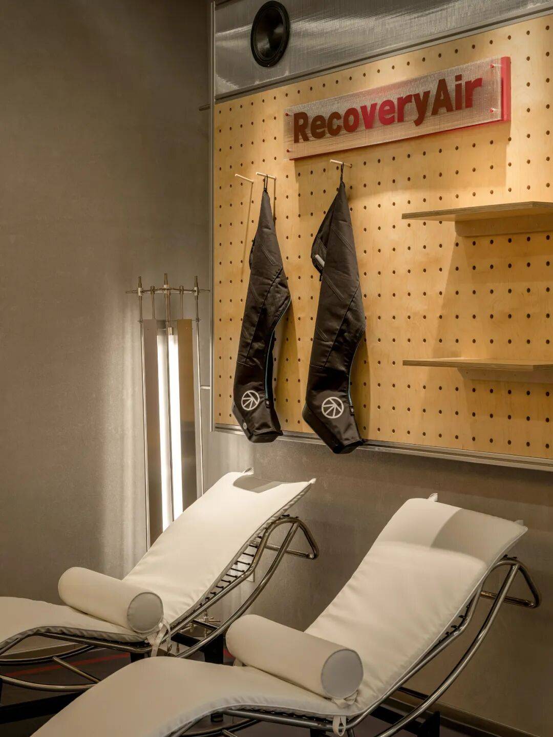 气压裤治疗区紧邻核心服务动线,是专为Therabody Recovery Air 气压裤康复治疗打造的专属功能区。区域内配置符合康复人体工学的专业治疗椅,而非常规躺椅,可精准支撑身体姿态,确保气压裤在治疗过程中贴合肌群、发挥最佳作用;治疗椅采用轻量化医用级材质,便于根据治疗预约动线灵活调整布局,保障诊疗流程高效有序。