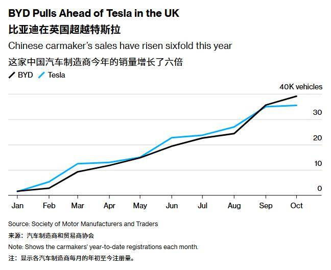 IT之家 11 月 5 日消息,据彭博社报道,比亚迪在英国市场正逐渐领先特斯拉。