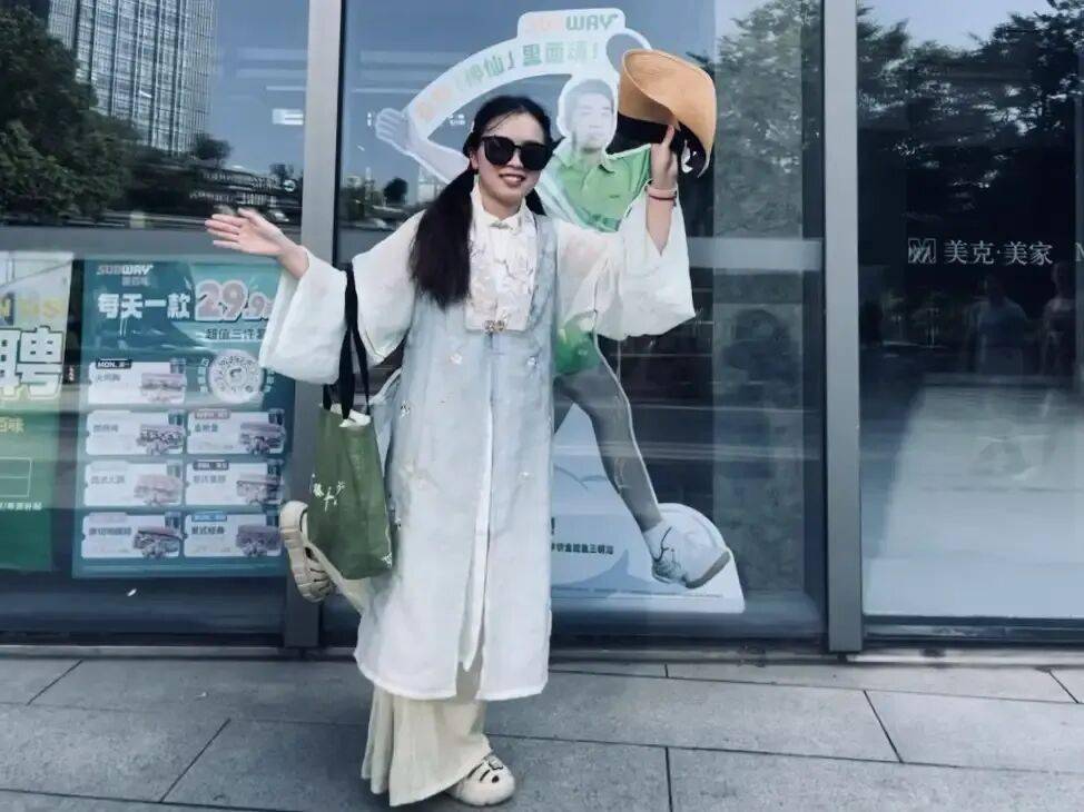 更重要的是,她们通过服饰穿越时空,完成了一次对传统女性角色的再诠释:不再是被动等待拯救的闺秀,而是主动探索世界的行者。当萨日娜披着青色长衫站在开元寺前诵读诗句时,那种沉静的力量感,远胜千言万语的女权宣言。