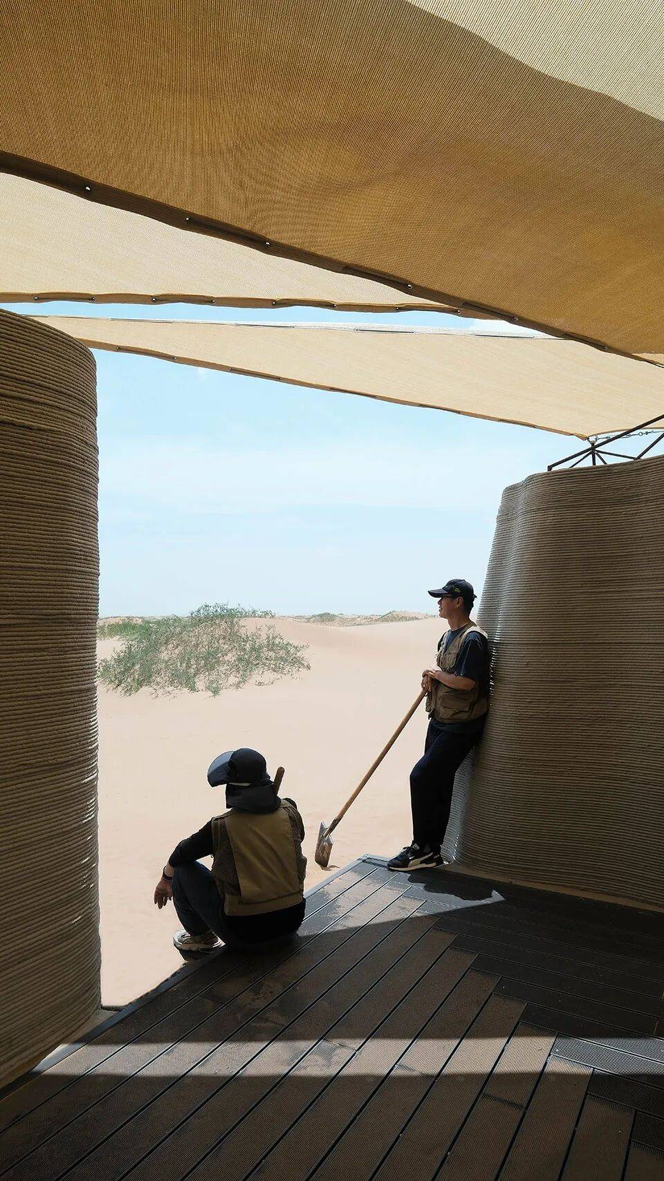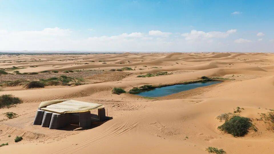 作为中国首例在沙漠环境中,采用三维混凝土打印技术完成的公共建筑,项目不仅服务于内蒙古阿拉善左旗地区治沙锁边与生态修复事业,也为人类探索适应极端气候的可持续建造提供实验样本。