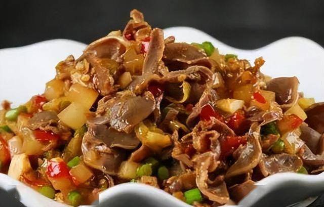 1、备好所用食材,鸡胗切片,萝卜干温水泡软切片。