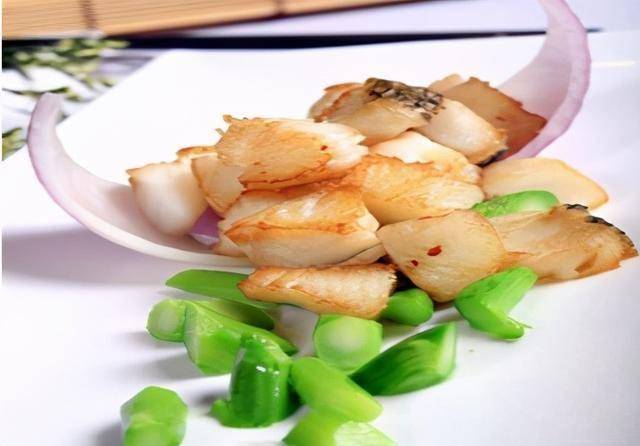 这道菜还有另外一种做法就是鳕鱼、芥蓝梗改刀切粒,其余做法一样,味道上鳕鱼外略脆,肉质鲜软,可以做为餐厅主打海鲜菜推出。