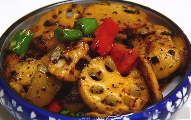 藕片为保持脆脆的口感,所以不必炒得太久,断生后再翻炒五六分钟就可以出锅装盘了。