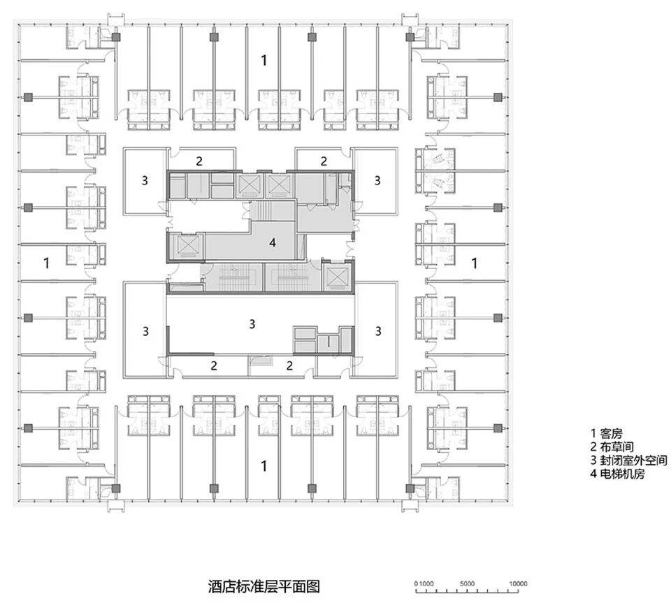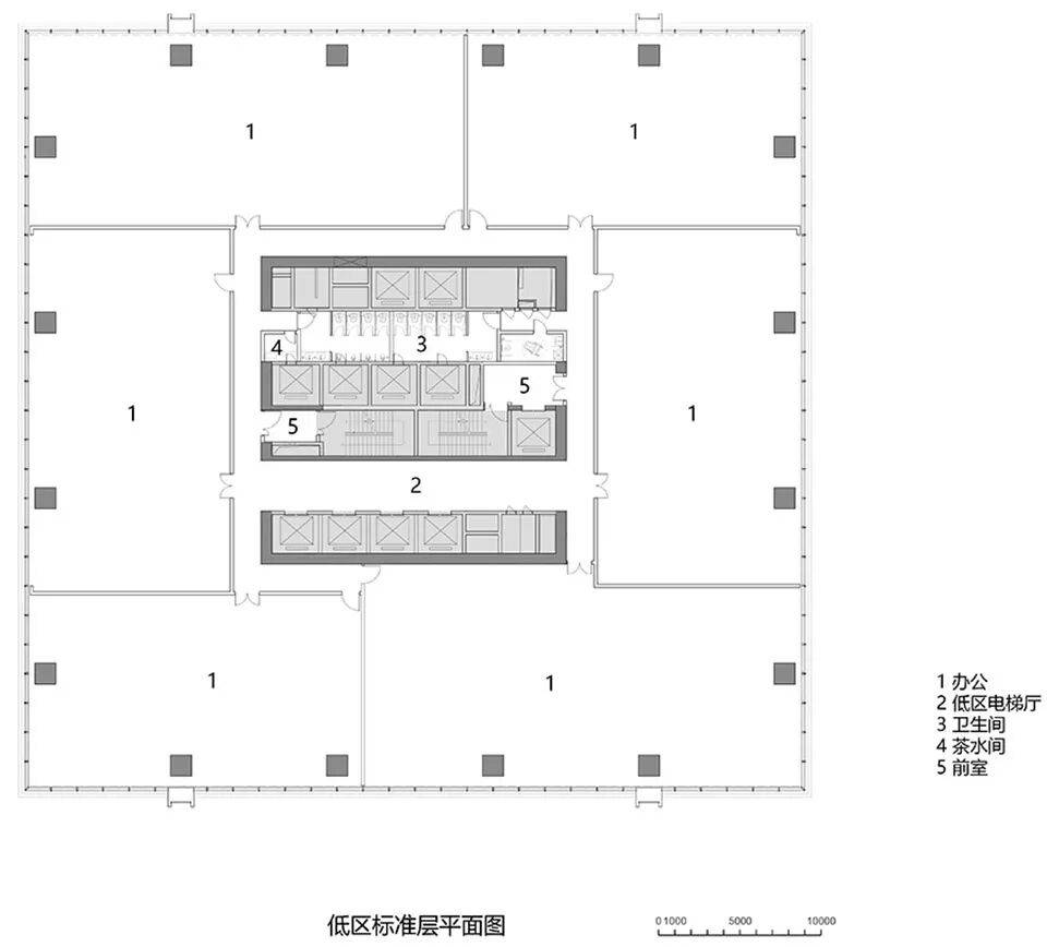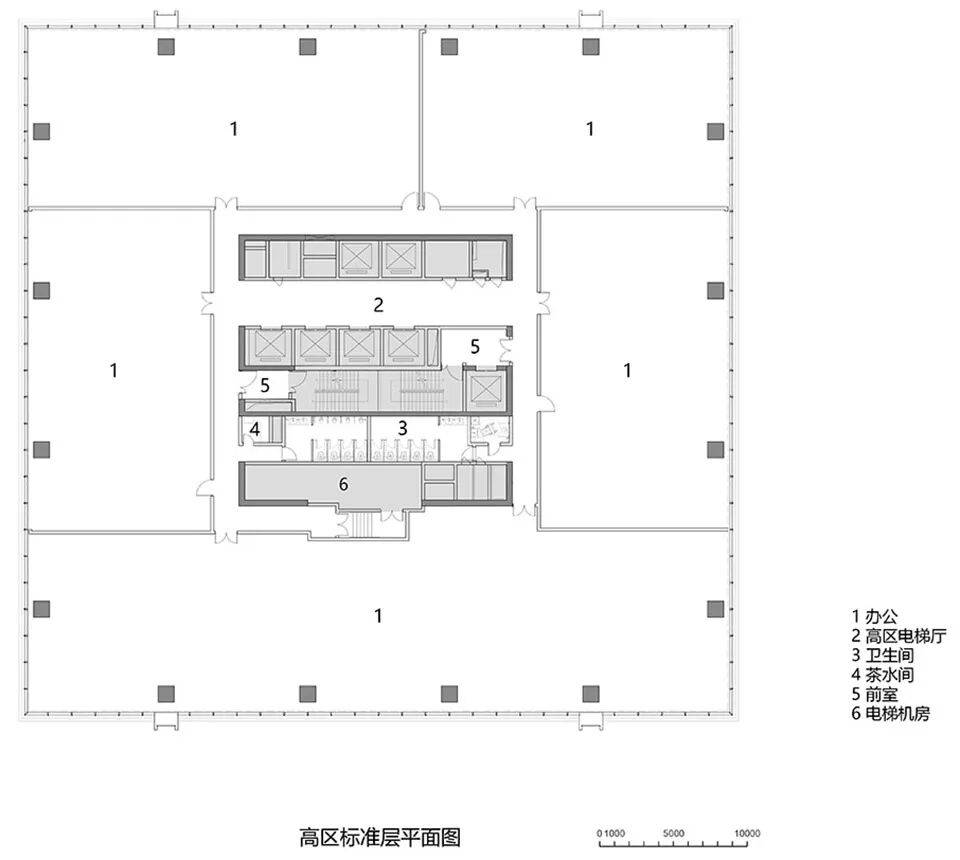 这种对于空间的解放不仅限于大堂,在避难层的可用空间里也存在。