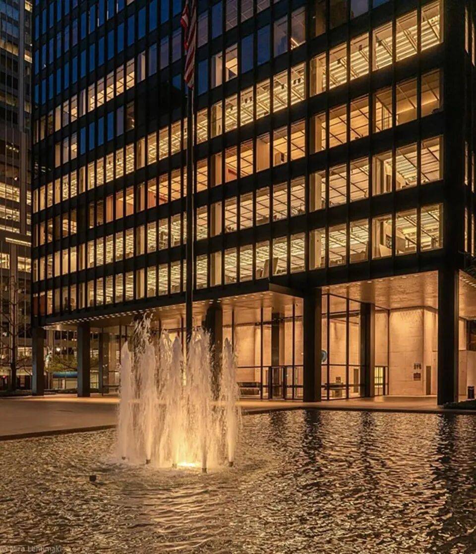 密斯在西格拉姆大厦中通过底层后退实现了大堂的无柱和自由,结构的真实性以及底层空间的自由度使其成为现代主义高层建筑的典范。