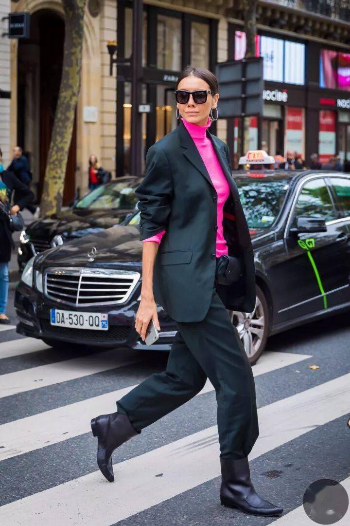 4. 小高领+西装外套,职场女性的最爱,