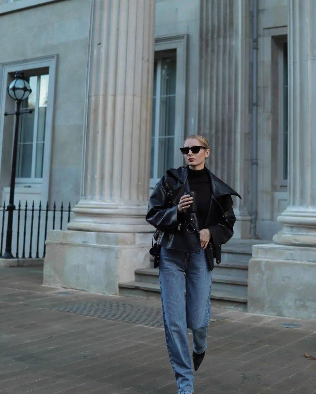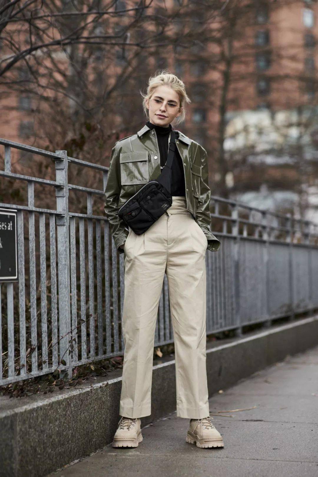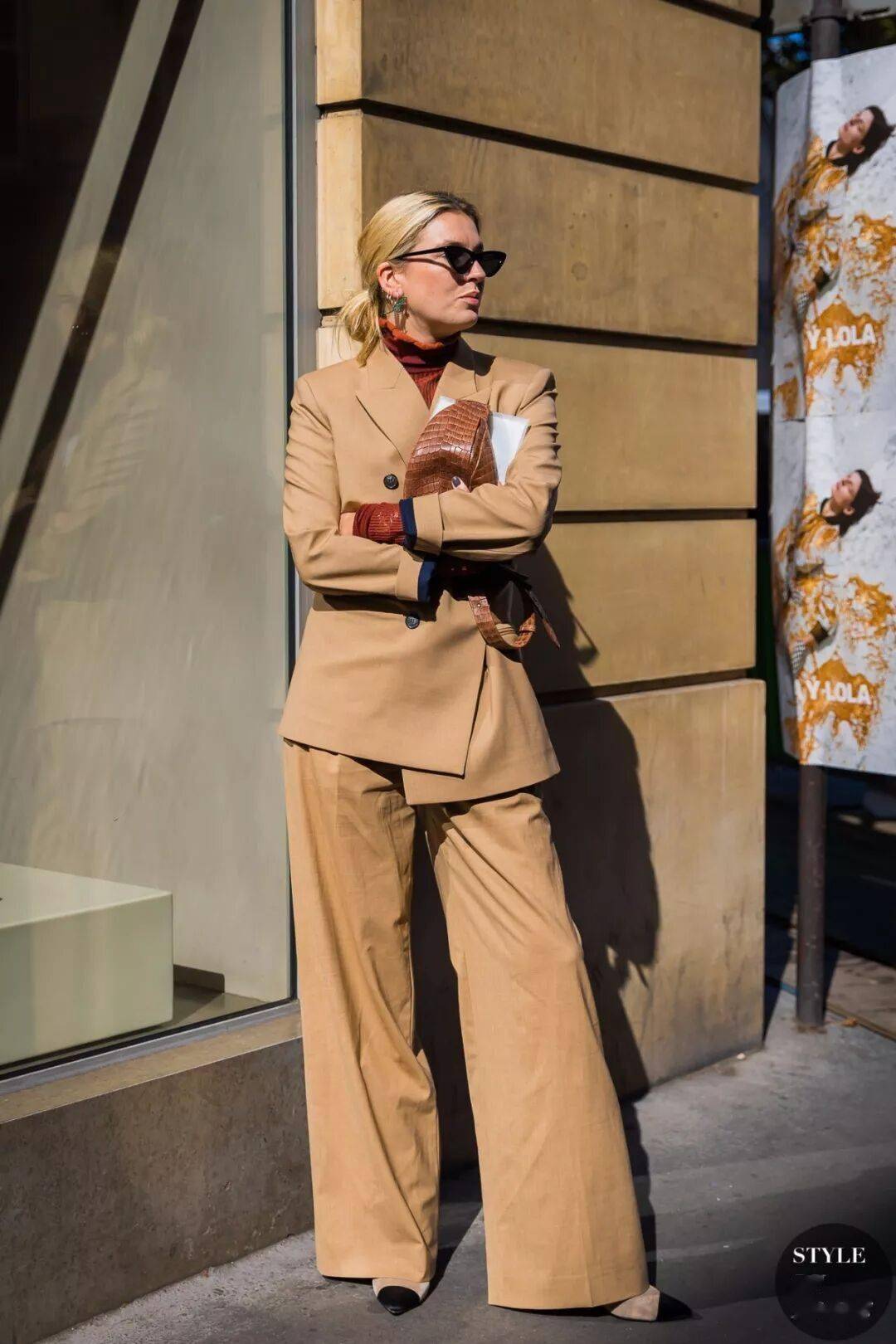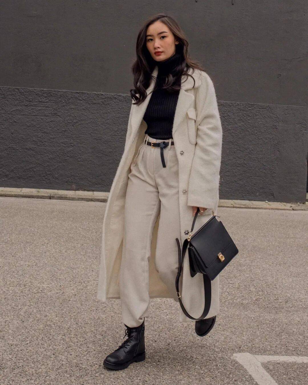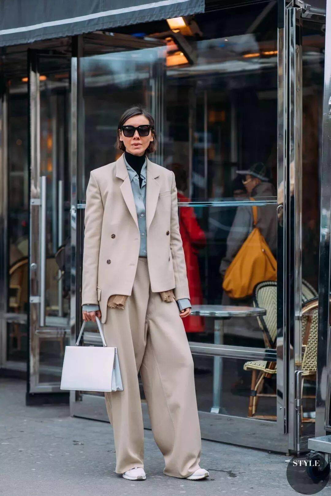 3. 小高领+阔腿裤,气场全开,