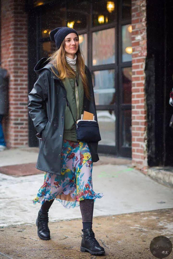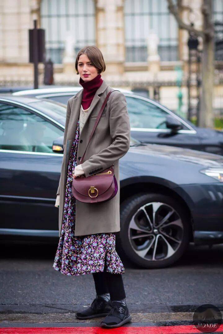 7. 小高领+连衣裙,层次感十足,