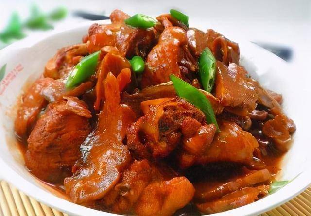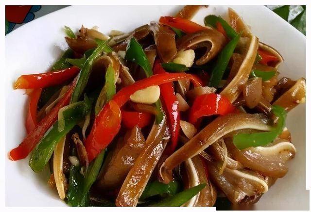 3. 下蹄筋块翻炒,加生抽、料酒、醋、糖、盐调味,淋香油即可。
