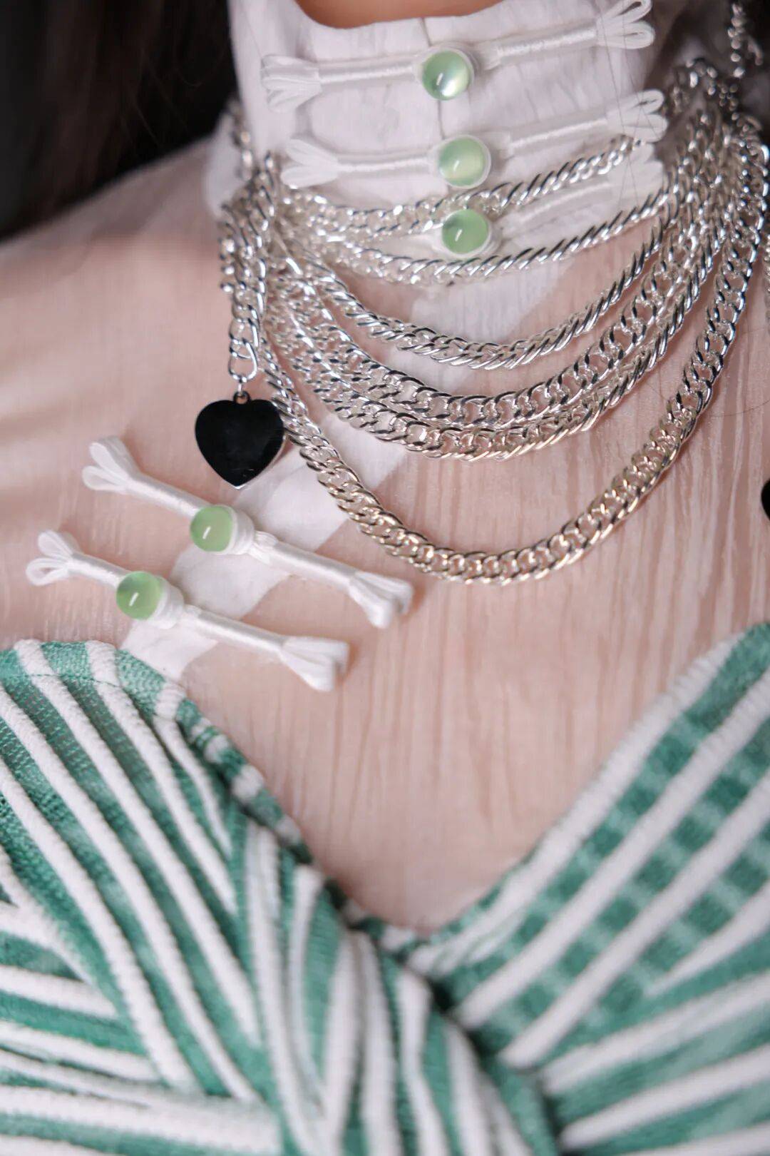 银腰带以金属饰件重现,勾勒女性线条。
