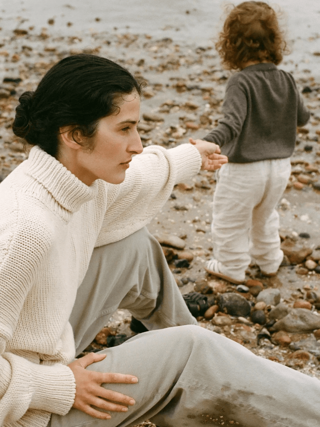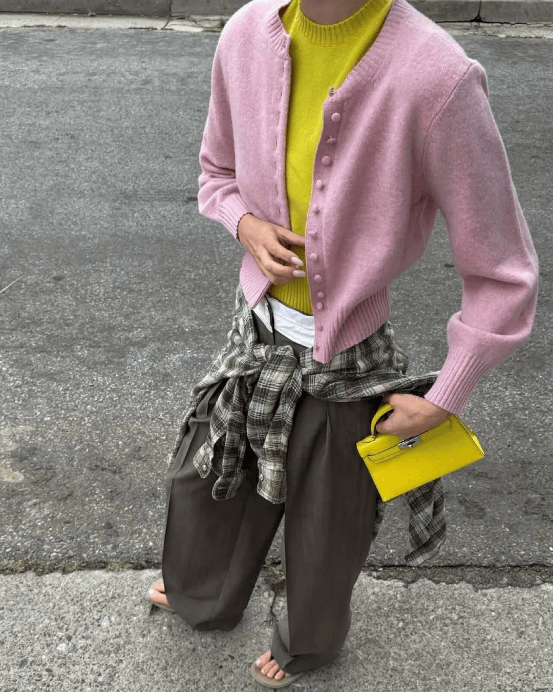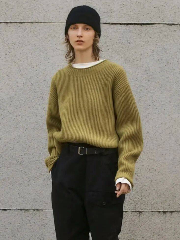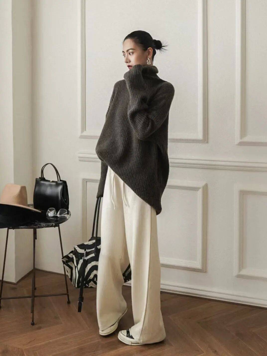 深色毛衣+浅色裤子(如燕麦白)视觉轻盈,反之则稳重
