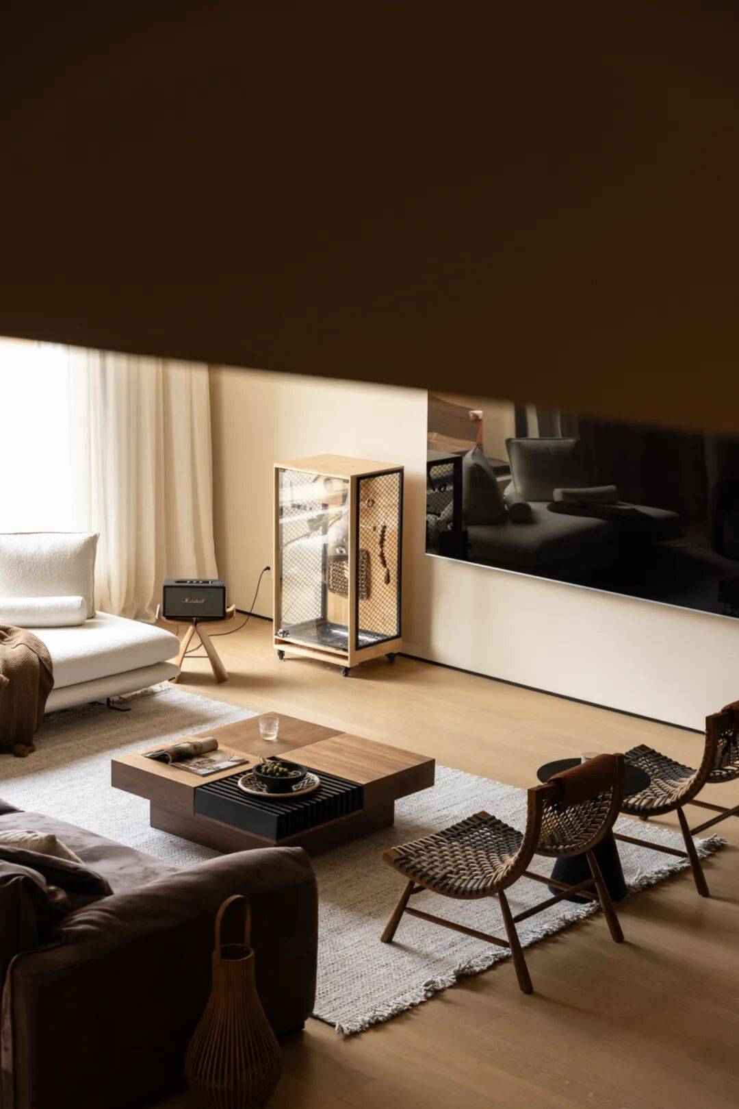 - 材质选择:大面积温润木地板与局部天然石材墙面奠定温暖底色,凸显原生质感。