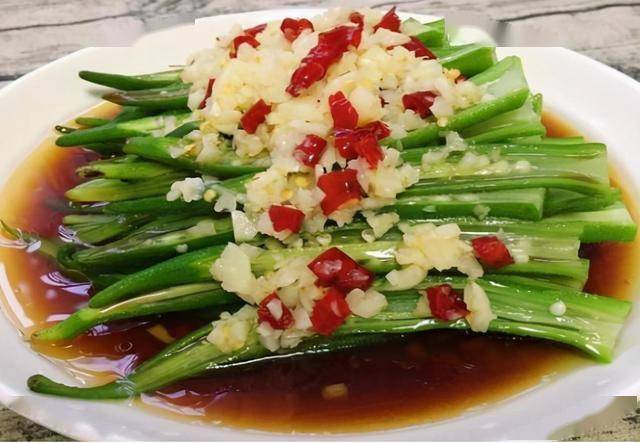 3. 加盐、少许清水和蒜蓉调味,出锅前淋花椒油。