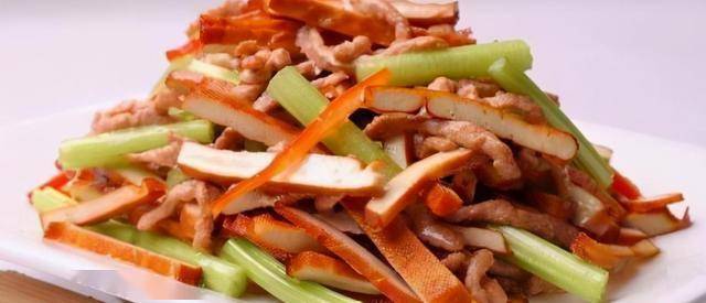 做法:1.胡萝卜去皮,洗净,切丝。黑木耳、豆腐干分别洗净,切均丝。