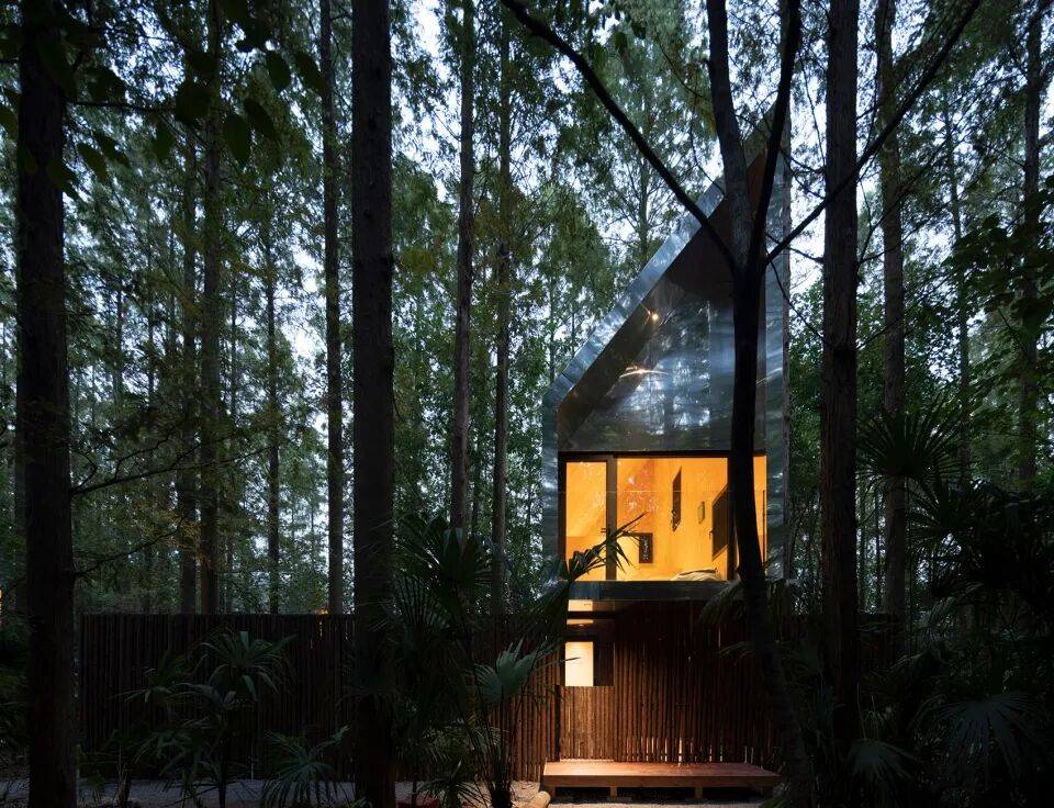 一栋被镜面金属包裹的树屋,使森林变得光怪陆离。在私享的森林里,阳光被反射,现实变得亦真亦幻。这是一栋鼓励做梦的树屋,人们可以和小鸟一起睡在天上,感受梦幻般的睡眠体验。