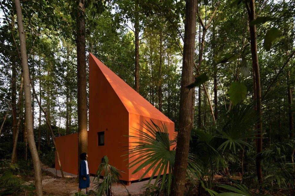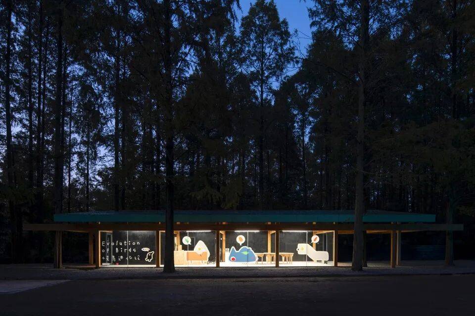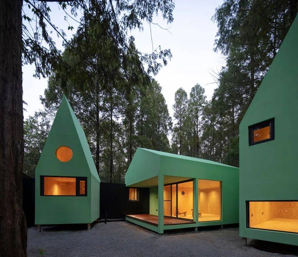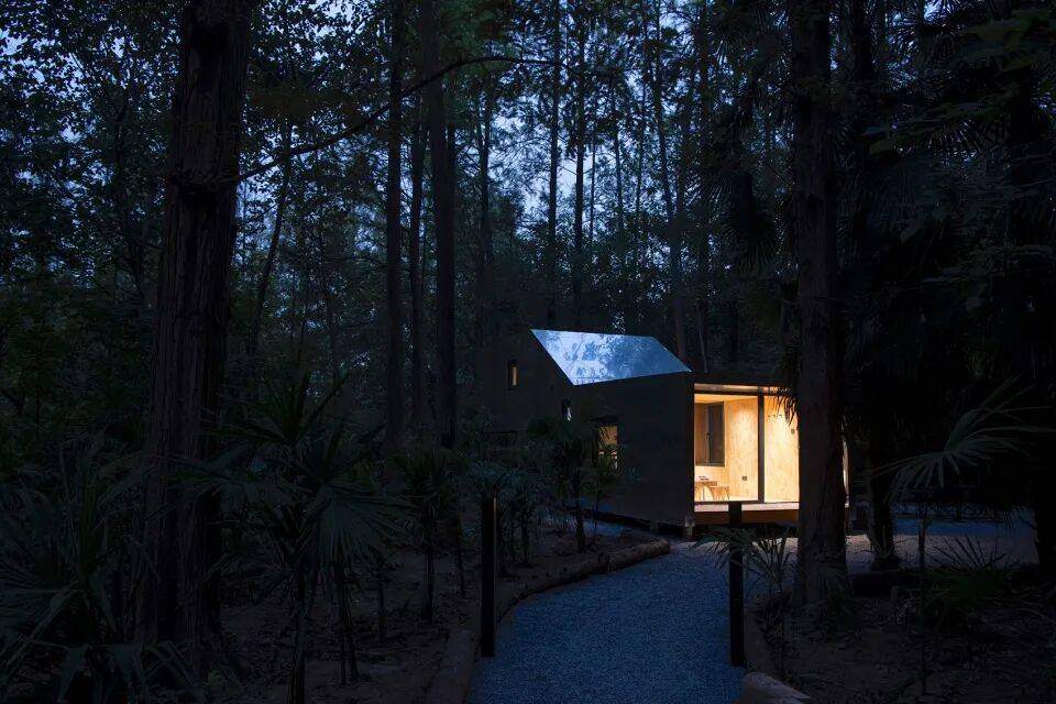 个个世界始终保持对自然的极致尊重。项目保留了场地每一棵树,采用全架空装配式木结构,地面不做任何硬化和人工景观,最大限度保持了水杉林的原生态场景。
