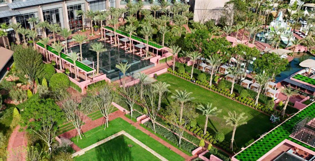 酒店将自然体验延伸到更广阔的场域:山茶花园绚烂典雅,橄榄花园静谧深沉,沙地植物花园充满野趣,高尔夫花园开阔舒展。四大主题花园构建出一幅自然迷宫的图景,鼓励人们探索、驻足、冥想,在与植物的互动中找回与土地的联结。