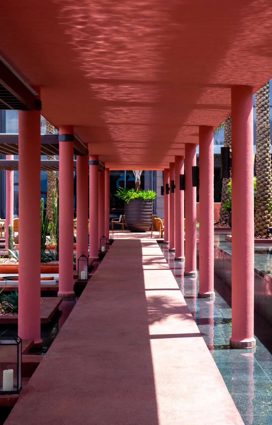 酒店的核心设计理念在于打破边界,营造出一种无界的空间体验。通过近端水面的巧妙处理,设计师巧妙地引导着人的视线,将远方浩渺的湖面“拉”入中庭,形成了一条震撼的视觉通廊。当人们站在中庭,仿佛置身于湖光山色之间,湖水的波澜、天空的变幻尽收眼底。中景处,框景廊以精妙的边界处理划分内外庭,它不仅仅是一个空间的界定者,更像是一个天然的画框,将湖光山色定格为一幅流动的画卷。随着时间的变化,这幅画卷也在不断地变换着色彩和姿态,让人百看不厌。