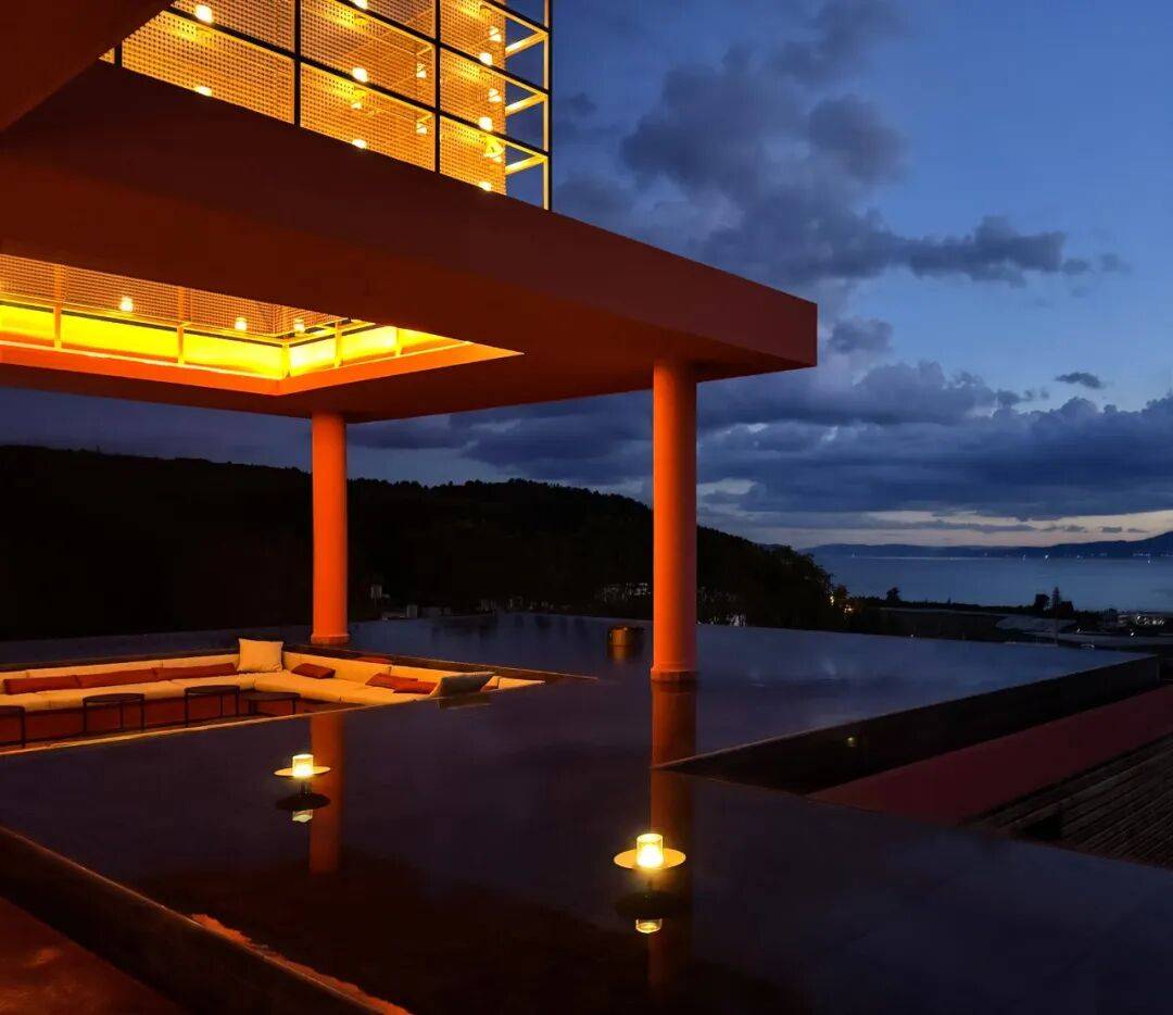 这里,设计不再是形式的堆叠,而是对自然的谦卑回应。抚仙湖度假酒店以空间为诗,以仪式为歌,邀请每一位抵达者沉浸于无界之境——在视觉的通廊中漫步,在光火的仪式中沉思,在花园的迷途中发现自我,最终与湖、与天、与自然达成永恒的共鸣。